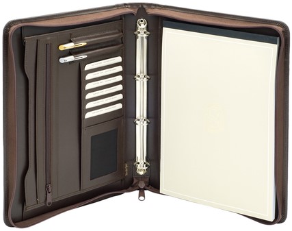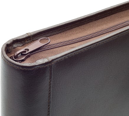 Schrijfmap van der Spek A4 leer 4-rings 25mm O-mechaniek + rits bruin
