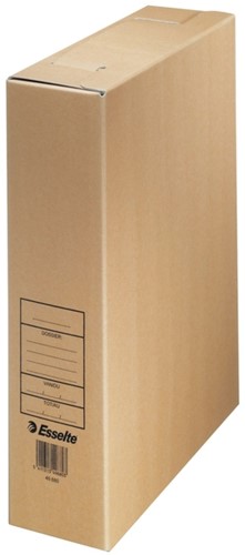 Ultra snel monteren. Vervaardigd uit stevig bruin karton. Speciaal ontworpen om snel te monteren zonder metalen clips. Bedrukking in zwart.