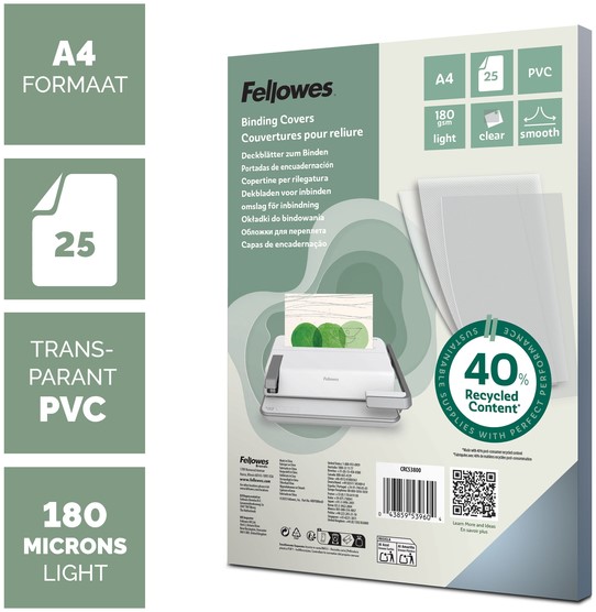 Voorblad Fellowes A4 PVC 180micron recycled 100 stuks