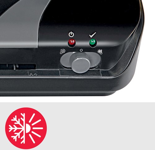Voorzien van koudlamineren functie voor gebruik van zelfklevende koudlamineer hoezen, om warmtegevoelige materialen te beschermen.