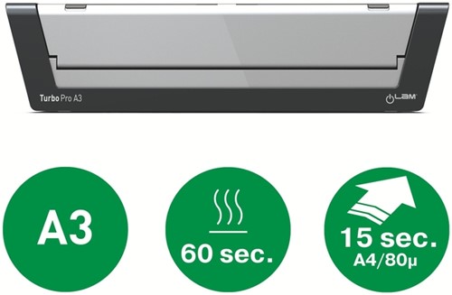 Een A4 blad van 80 micron lamineren duurt ongeveer 15 seconden.