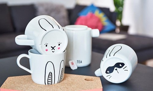 Dierenspaarpot Creativ Company terracotta 4 stuks uil, vos, haas en egel 9-10cm wit