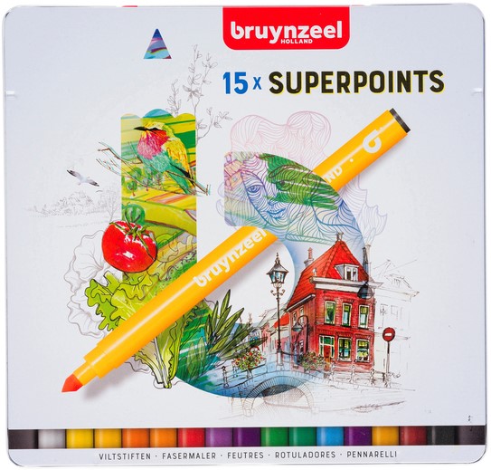 Viltstift Bruynzeel Super Points blik à 25 kleuren