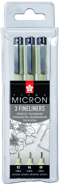 Fineliner Sakura Pigma Micron set à 3 schrijfbreedtes fijn zwart
