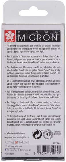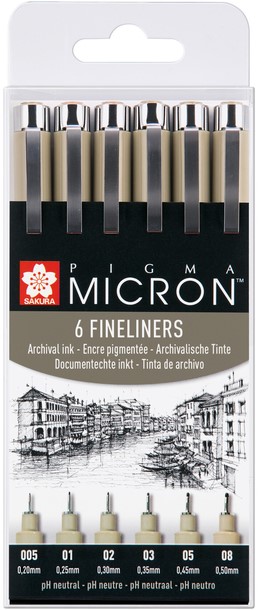 De diverse lijndiktes van de Sakura Pigma Micron geven je de ultieme controle over je uit te voeren schrijf- of tekentaak en schrijfstijl.