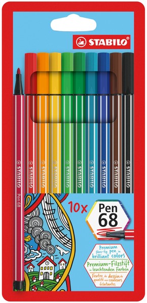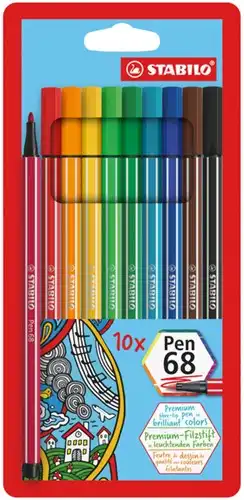 De premium viltstift STABILO Pen 68 in een etui à 10 kleuren