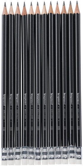 Grafietpotlood Bruynzeel Teens HB met gum set à 12 stuks grijs