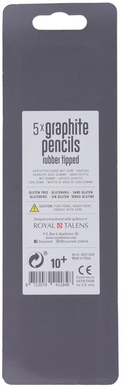 Grafietpotlood Bruynzeel Teens HB met gum set à 5 stuks grijs