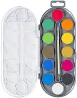 De verpakking bevat 12 waterverf napjes en een bijbehorend penseel.