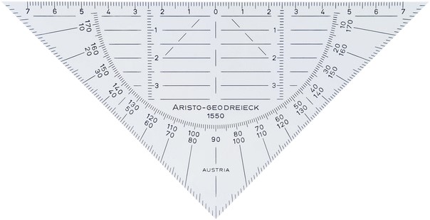 Geodriehoek Aristo 1552 160mm transparant met gele rand
