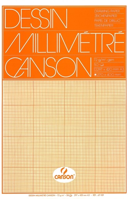 Millimeterpapier Canson lichtblauw bedrukt 50vel 72gr A3 wit