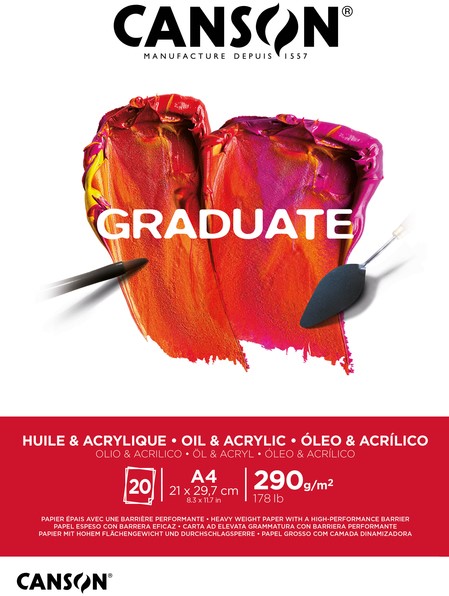 Schilderpapier Canson Graduate Oil & Acrylic 20vel 290gr A3 natuurlijk wit