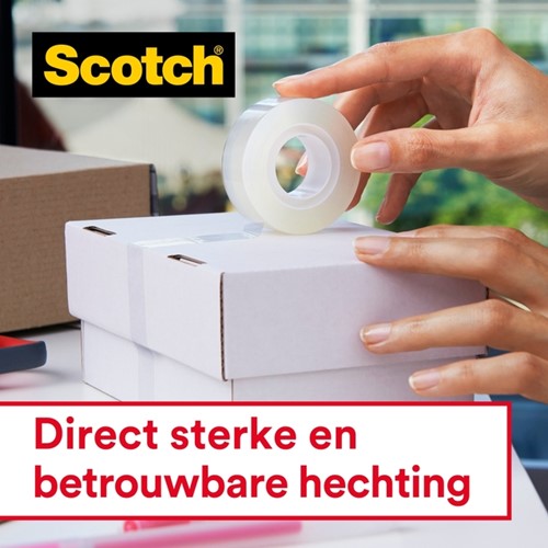 Scotch® Crystal Tape is een veelzijdige kleeftape die een heldere, glanzende afwerking biedt en die langdurig kan worden aangebracht. Plakkende tape die direct en permanent hecht en geschikt is voor diverse algemene klussen, zoals verpakken, sluiten en repareren. De tape is verkrijgbaar in diverse breedten en lengten en past in allerlei plakbandhouders.