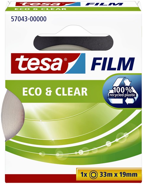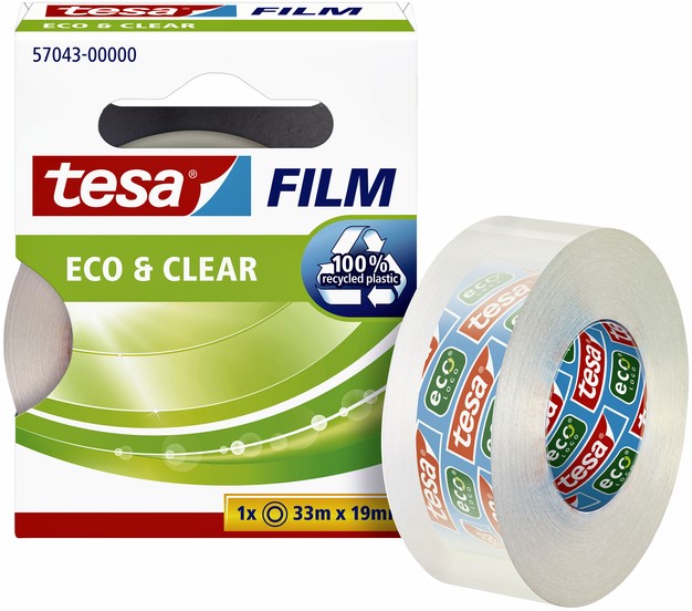 tesafilm® eco & clear is een milieuvriendelijke en vrijwel onzichtbare tape die gerecycleerde materialen combineert met hoogwaardige prestaties.