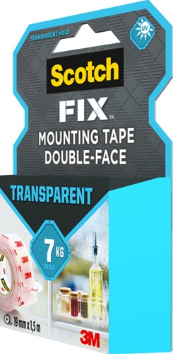 Scotch-Fix™ Transparant montagetape met 3M™ geavanceerde technologie. Met een draagvermogen tot 7 kg is deze onzichtbare tape geschikt voor binnengebruik en is ideaal voor gebruik op glas, tegels, acrylaat en metaal.