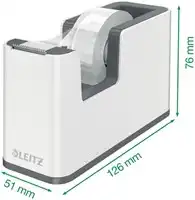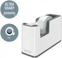 De plakbandhouder van premium Leitz kwaliteit is uitgevoerd in opvallende, stijlvolle duokleuren met glanzende afwerking. Het heeft een modern design dat zowel op kantoor als thuis past.