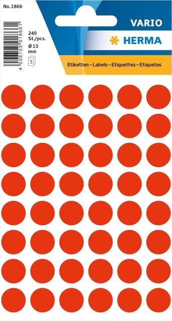 Etiket HERMA 1846 rond 8mm fluor rood 540 stuks