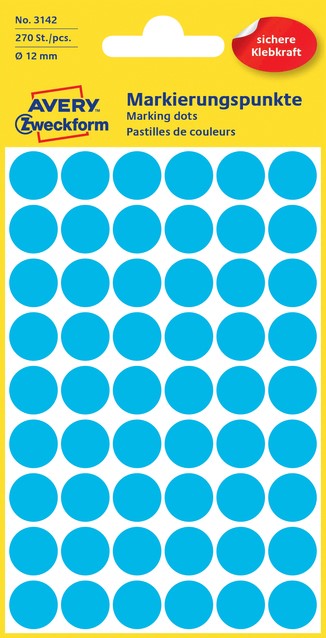 Etiket Avery 3088 rond 12mm assorti 270 stuks