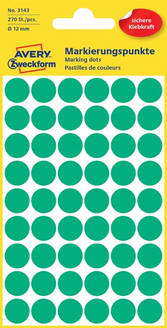 Etiket Avery 3088 rond 12mm assorti 270 stuks