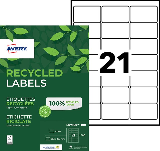 Gerecyclede Laser adresetiketten zijn voorzien van de unieke Avery QuickPEEL-toepassing voor een snelle en professionele verwerking.