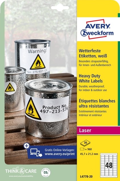 Etiket Avery L4773-20 63.5x33.9mm polyester wit 480 stuks