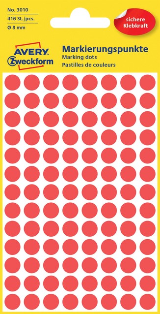 Etiket Avery 3090 rond 8mm assorti 416 stuks