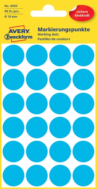 Etiket Avery 3089 rond 18mm assorti 96 stuks