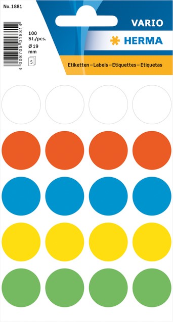 Etiket Avery 3089 rond 18mm assorti 96 stuks