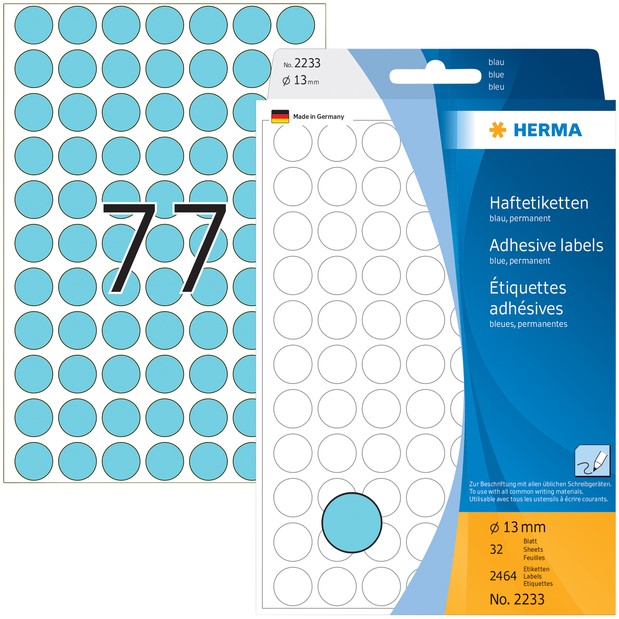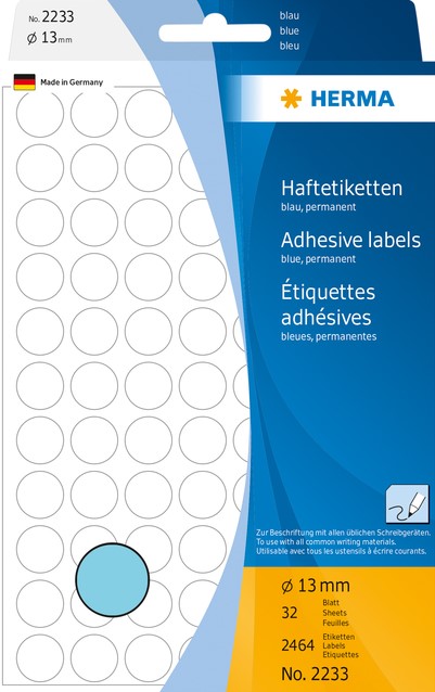 Etiket HERMA 1863 rond 12mm blauw 240 stuks