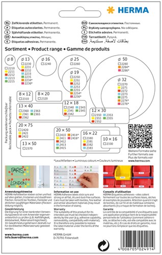 Etiket HERMA 4421 210x297mm verwijderbaar A4 geel 20stuks