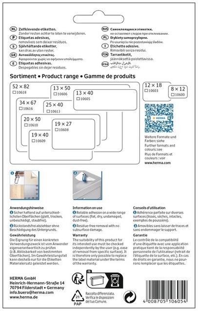 Etiket HERMA 10603 12x18mm verwijderbaar wit 1344 stuks