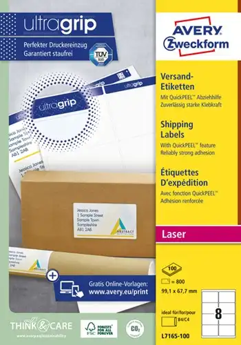 Etiket Avery L7165B-100 99.1x67.7mm blockout 800stuks