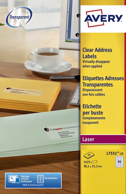 Etiket Avery J8551-25 38.1x21.2mm transparant 1625 stuks