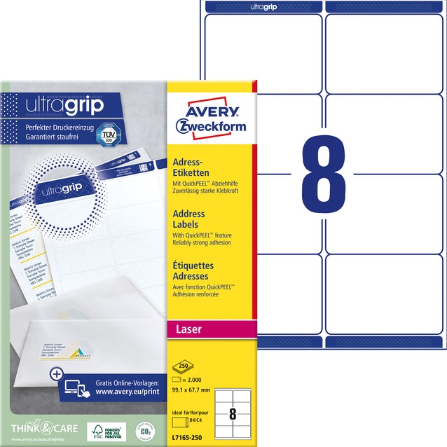 Etiket Avery L7165-100 99.1x67.7mm wit 800 stuks
