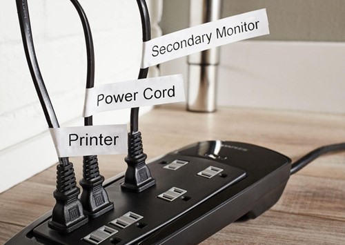 Indien u de tapes op een gebogen oppervlak wilt gebruiken, zoals stroomkabels, dan moet u de Dymo D1 flexibele nylon tape gebruiken.