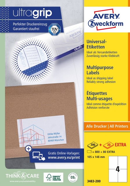 Etiket Avery 3483 105x148mm A6 wit 400 stuks