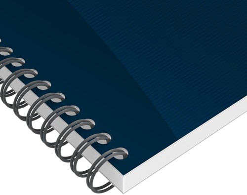 Grijze geplastificeerde dubbelspiraal binding om het notebook geheel plat open te leggen voor een maximaal comfort.