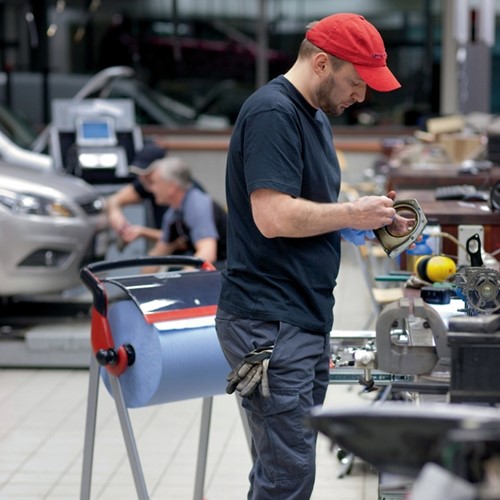 Deze dispenser is te gebruiken met Tork industrial-papierrollen en -reinigingsdoeken.