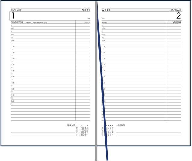 Kantooragenda 2026 Quantore kort 1dag/1pagina zwart