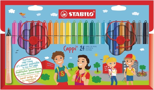 De Cappi viltstiften kunnen 24 uur zonder dop en de inkt is uitwasbaar.