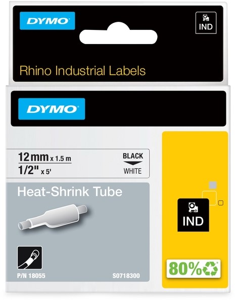 Labeltape Dymo Rhino industrieel krimpkous 19mm zwart op wit