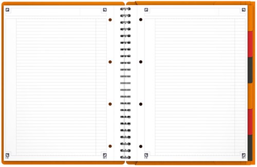 De robuuste zwarte dubbele spiraalbinding zorgt ervoor dat het notebook plat blijft liggen of gemakkelijk dichtgeklapt kan worden voor een maximaal comfort en flexibiliteit.