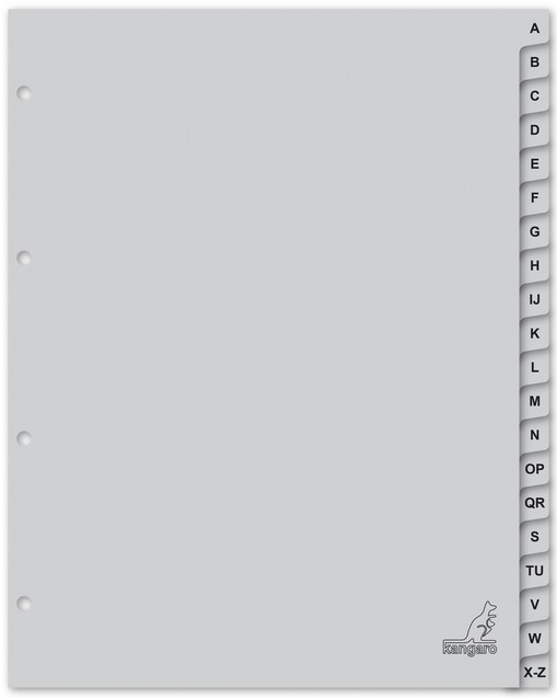 Tabbladen Kangaro A4 4-gaats 20-delig A-Z breed PP grijs