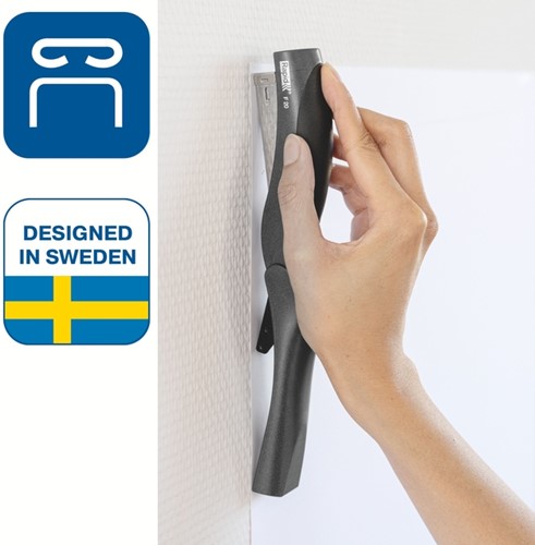 Handige, sterke, rechtopstaande nietmachine met stalen mechanisme en ergonomische rubberen handgreep. Ideaal voor thuis en op kantoor.