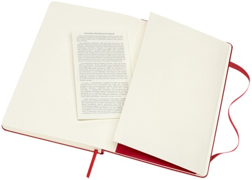 Inclusief de karakteristieke elementen van het legendarische notitieboekje: afgeronde hoeken, ivoorkleurige pagina's, elastische sluiting, leeslint en uitbreidbaar achtervak; allemaal achter een kleurrijke hardcover.