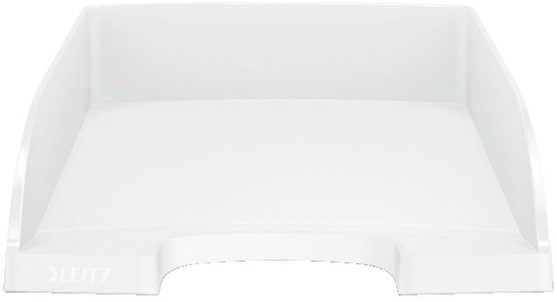 Robuuste witte brievenbak van eersteklas kwaliteit. Onderdeel van het modulaire brievenbaksysteem van Leitz, waarbij alle 3 de formaten verticaal op elkaar of "getrapt" gestapeld kunnen worden. Qua design en kleur afgestemd op de opbergproducten uit de reeks Leitz Plus.