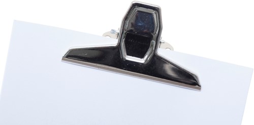 Verchroomde papierklem, uitgevoerd met een robuuste staalveer.