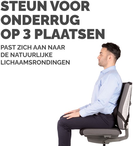 Steun voor de onderrug op drie plaatsen, die uitzet en inkrimpt en zich zo aanpast aan de natuurlijke lichaamsrondingen.