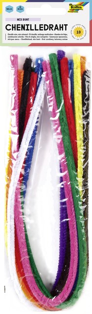 Chenilledraad Folia 50cm 8mm doorsnede 10 stuks metalic assorti