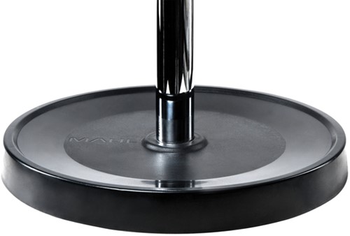 Extreem stabiel: zware betonvoet met kunststof afdekking en vilten vloerbescherming.